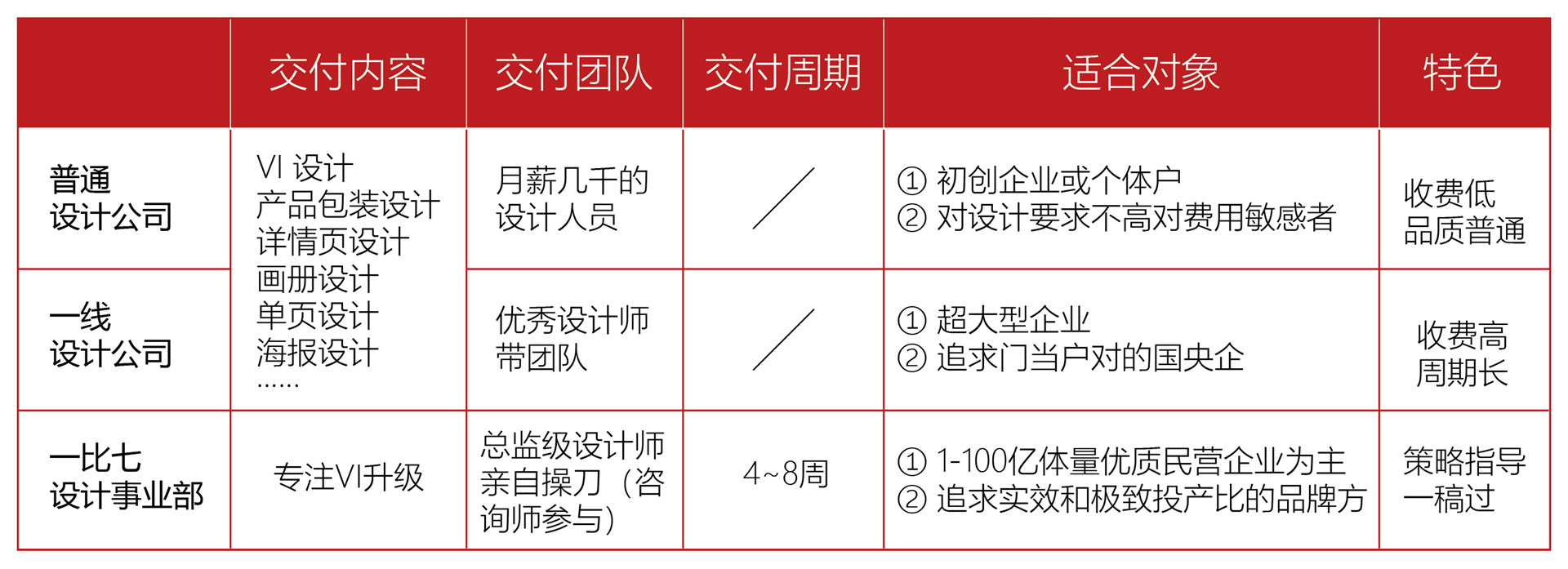 其次,一比七是咨询公司,所有的设计都有策略指导,以帮助企业树立品牌,提升业绩为导向。这是99%以上的竞争对手不具备的。